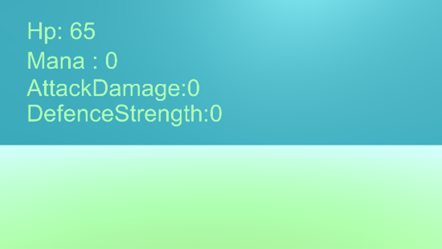 그러면 아래와 같이 체력 , 마나 , 공격력 , 방어력의 값들이 각각 수정된 상태로 표현된 것을 알 수있습니다.